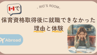 はじめての方へ▶ ブログを始めた理由▶ 今の生活▶ これからRioこの記事はこんな人に向けて書いています。・カナダで保育士として働くか迷っている人・日本との違いを知りたい人・ECE留学を検討している人「カナダの保育士って実際どうなの?」「本...